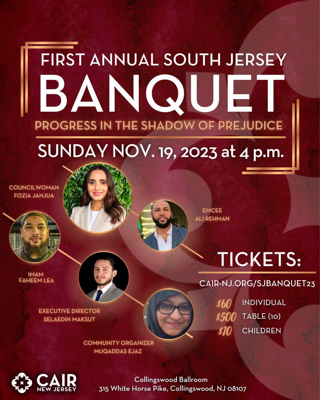 I was honored to be the keynote speaker at the 1st annual fundraising banquet for CAIR-SJ, as they are planning to open up a branch-a much needed branch-in South Jersey. The speech is below: